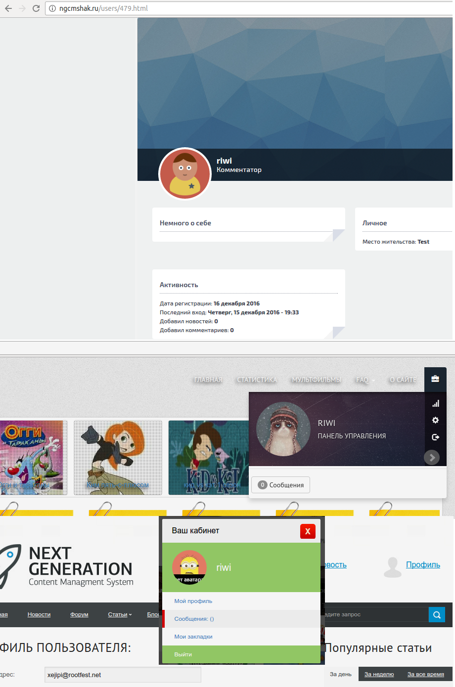 попробуй зарегистрироваться на на этих и войти , желательно пробывать в хроме. У меня не заходит demo.ngcmshak.ru, вы пишете что все нормально. На какой не зайдет пиши скину доступ